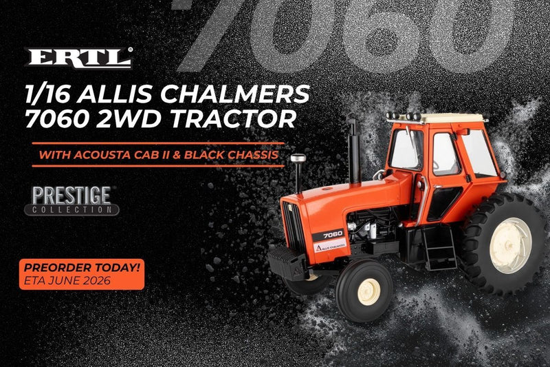 View full detailsAllis Chalmers 7060 Tractor Replica 100% all-new tooling! Equipped with a detailed Acousta Cab II with mirrors and stadium lights Cab door opens t...
