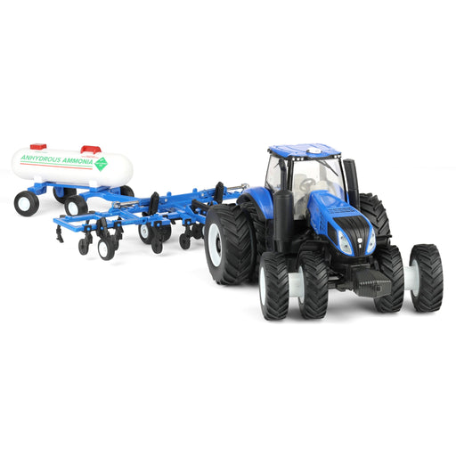 View full detailsNew Holland T8.385 Tractor Replica Set Paired with a blue AA Applicator and an Anhydrous Ammonia Tank with blue frame Tractor equipped with front ...