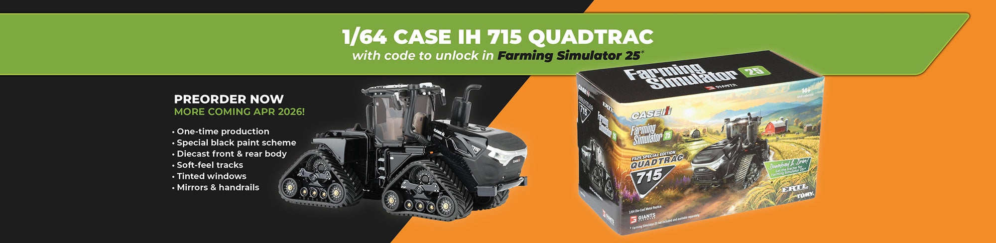 View full detailsPlease note: item ineligible for return due to unlock code in Farming Simulator 25. Case IH 715 Quadtrac Tractor Replica Farming Simulator 25 Blac...