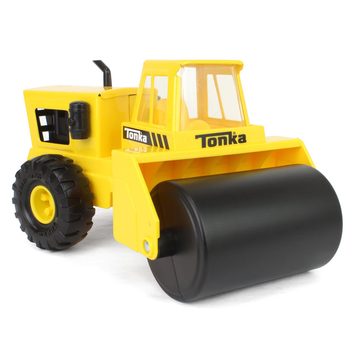 Built Tonka Tough for generations! Pick up a rugged piece of construction machinery with this Tonka Toys Steel Classics Steam Roller - it measures over a foot long! The cab and engine of this Steam Roller are made from real steel. Its middle joint allows for sharp turns and flexible navigation. Fill the roller with sand or water to make it heavier for your next steam rolling project (sand/water not included). According to the manufacturer, this toy is recommended for ages 3+ years, making it a great addition to the toy farm fleet!