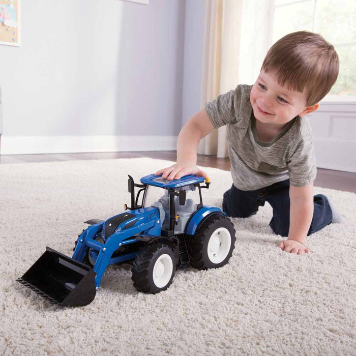 This item is part of the Big Farm line of playable kids toys by TOMY ERTL. The 1/16 scale New Holland T7.270 with loader features new tooling from ERTL and lights & sounds! It has a removable cab, an adjustable hitch, and a working loader. It requires 3 AAA batteries (which are included). Recommended for ages 3+ years, making this item great for play!