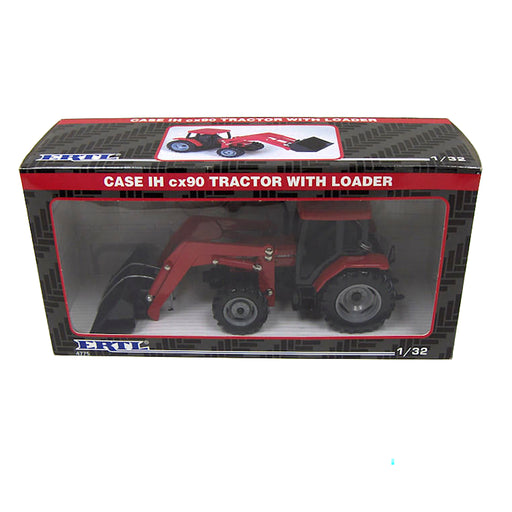 Case IH cx90 toy tractor with loader Manufacturer: ERTL Material: Diecast metal Scale: 1/32 Approximate dimensions: 8in L x 2.5in W x 3in H Age gr...