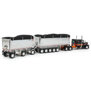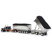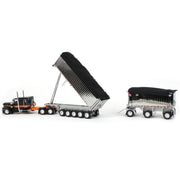 1/64 Black/Orange/Chrome Peterbilt 389 w/ Chrome East Genesis II End Dump Trailers, DCP by First Gear