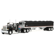 1/64 GMC General Semi Truck with Tandem Axle Wilson Pacesetter Grain Trailer, Black/White, DCP by First Gear