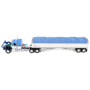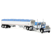 Bring classic trucking style to your collection with this GMC General Semi Truck Replica paired with a Wilson Pacesetter Bottom Grain Trailer, finished in an authentic Shupe Bros. Trucking with blue and white decoration. This highly detailed 1/64 scale diecast semi truck and grain trailer features a realistic 34-inch flattop sleeper cab, accurate proportions, and finely tooled details throughout the tractor and trailer. Expertly manufactured by DCP by First Gear, the model is constructed from diecast metal with select plastic components for durability and display-quality realism. Designed for ages 14 and up, this collectible GMC General semi truck replica is perfect for farm toy displays, trucking dioramas, or diecast collections and is not intended for play, making it an excellent choice for fans of vintage GMC trucks, Wilson grain trailers, and 1/64 scale diecast collectibles.