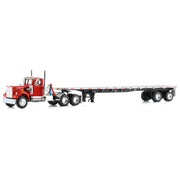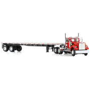 Introducing an a new DCP by First Gear release for 2025: the 1/64 White Western Star semi truck! This Western Star truck features a day cab configuration. It is paired with a 48ft vintage Utility flatbed trailer. The truck features eye-catching viper red decoration