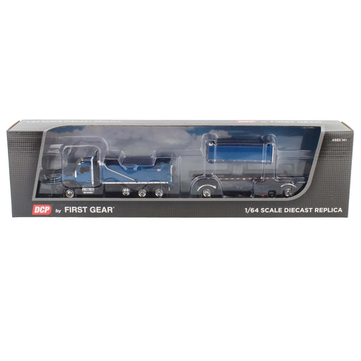 1/64 Blue Peterbilt 379 Sleeper Semi Truck with Talbert Lowboy Trailer, DCP by First Gear