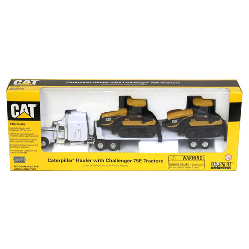 Caterpillar Hauler with Challenger 75E tractors replica set Manufacturer: Norscot Materials: Diecast metal construction, rubber tires and tracks, ...