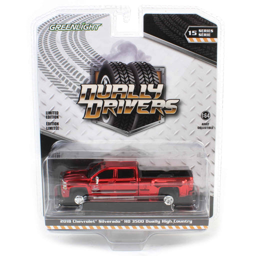 1/64 2018 Chevrolet Silverado 3500 HD High Country Dually Pickup Truck, Cajun Red Metallic, Dually Drivers Series 15
