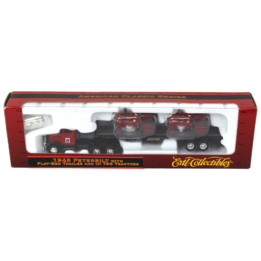 1/87 1948 Peterbilt Semi Truck with Flatbed Trailer & (2) IH 756 Tractors by ERTL