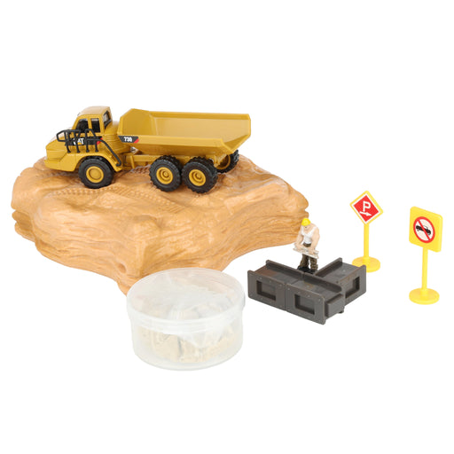 CAT Earth Mover Playset Toy set includes a Caterpillar 730 Dump Truck, landscape base, Motion Sand, construction worker figure, and accessories Tr...