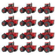 The tractors in this sealed case of 12 are equipped with front and rear duals and a movable rear three point hitch. Additional features include an articulating front and rear body, clear cab windows and a detailed cab interior. Its front and rear bodies, hood and wheels are all made out of die-cast metal.
