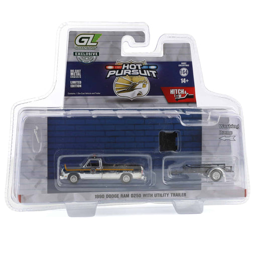 View full detailsSilver Chrome Chase ~ 1/64 1990 Dodge Ram D-250 with Utility Trailer, Philadelphia, PA Police Department, Hot Pursuit Hitch & Tow Series 1