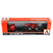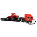 Made by ERTL, this eye-catching 1/64 scale set replicates a semi and trailer hauling an Allis Chalmers 7580 tractor. The tractor is constructed with a die-cast metal front and rear body, hood and cab. It is configured with front and rear duals. The tractor's maroon chassis, cab structure and decals all replicate an early styled unit. The semi truck is decorated with Allis Chalmers colors and logos. The lowboy trailer is constructed with die-cast metal. According to the manufacturer, this set is recommended for ages 14+ years, meaning it is for display only and not for play.