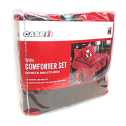 This is the TWIN Size Case IH Comforter Set. The comforter measures approximately 68in x 96in and comes with a one sham. The new fabric content made with 100% microfiber, 85 GSM. The set represent the red and black Case IH logo and tractors across the top of the comforter and sham and plaided skirting of the comforter. This is the perfect set for the all ages of CASE IH enthusiasts.