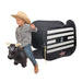 The PBR Pop-up Chute is designed with little ones in mind and fits perfectly with our Lil Bucker®. The chute is held together with easy to assemble velcro tabs. The chute even has a working pull-gate that can swing open when the rodeo timer starts! When the bucking is finished, you can use the travel bag to store and transport the chute to the next rodeo.