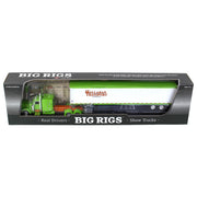 This authentic Peterbilt® Model 389 with 63" Flat Top Sleeper diecast metal replica model comes paired with a 53' Utility® Trailer and features an opening hood with authentic engine detail, accurately detailed cab interior, poseable front wheels, pivoting fifth-wheel for trailer attachment, detailed chassis and undercarriage. Includes certificate of authenticity and custom Big Rigs™ Series packaging. This quality replica is decorated with a neon green and white paint scheme. This 1/64 scale replica measures approximately 14" long, 1.75" wide, and 2.5" high.