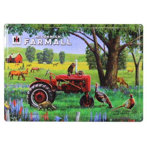 Features an IH Farmall F Series tractor in a fall farm scene with various animals Made of metal Embossed Comes with pre-drilled holes Recommended ...