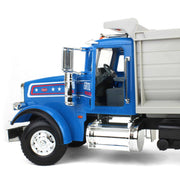 This is the 1/16 Big Farm Blue Peterbilt 367 Truck with dump truck body, by ERTL. Made of durable plastic, this truck features opening doors, adjustable mirrors, steerable front wheels, adjustable dump bed, an opening back gate and realistic lights and sounds. Batteries included. Measures close to 22.75 inches long, 7.75 inches wide and 8.75 inches high. Recommended ages 3+, great for play!