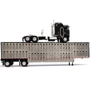 1/64 Kenworth K100 COE Semi Truck with Wilson Spread Axle Livestock Trailer, Black, DCP by First Gear