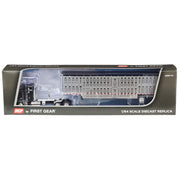 This 1/64 scale Kenworth K100 COE Semi Truck with Aerodyne Sleeper Cab is a detailed diecast metal replica crafted by DCP by First Gear. It's perfect for collectors of farm toys and semi truck models alike! This Kenworth truck features a classic cab-over-engine design with an Aerodyne sleeper cab, finished in sleek black decoration. Paired with a Wilson spread-axle livestock trailer, this set showcases the rugged power of agricultural trucks. Built for display with exceptional detailing and realism, this 1/64 diecast truck and trailer set is ideal for collectors ages 14 and up who appreciate high-quality, true-to-scale trucking replicas. Not for play.