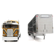 1/64 Kenworth K100 COE Semi Truck with Wilson Spread Axle Livestock Trailer, Gold/Black, DCP by First Gear