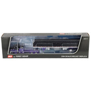 Own a true collector’s gem with this 1/64 scale Peterbilt 389 Semi Truck Replica paired with a 50ft Wilson Spread Axle Grain Trailer! Produced in an extremely limited run of only 252 units — with just 156 made available to the public, this truck is a must-have for diecast enthusiasts and trucking fans alike. Featuring an authentic K2/Bulkloads brand design, this black and purple Peterbilt 389 showcases a detailed 63-inch flattop sleeper cab, chrome exhaust stacks, and realistic trailer detailing for display perfection. Expertly crafted by DCP by First Gear, this replica combines diecast metal and durable plastic components for high-quality realism. Measuring approximately 15.75” L x 2.00” W x 3.00” H, this piece is recommended for ages 14 and up — perfect for display, collecting, or gifting to truck lovers. Don’t wait — very limited supplies available while they last!