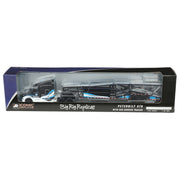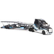 This car hauler semi's detailed interior, undercarriage, and functioning trailer ramps boast of both authenticity and display value. Whether you're building your model truck fleet or adding to your toy display, this model will make the perfect eye-catching addition to any collection while supplies last!