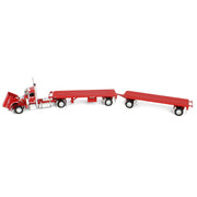 1/64 Viper Red Peterbilt 389 Day Cab with Utility Dual Flatbeds & Hay Load, DCP by First Gear