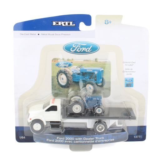Ford Dealer truck with Ford 2000 tractor Manufacturer: ERTL Material: Diecast metal with plastic components Scale: 1/64 Approximate dimensions...
