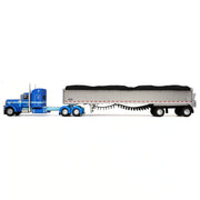 Add a standout piece to your collection with this Peterbilt 389 Semi Truck Replica paired with a Wilson Patriot Belt Trailer, a premium 1/64 scale diecast model built for serious collectors. Featuring a striking blue and silver paint decoration, this highly detailed Peterbilt 389 showcases a realistic 48-inch standup sleeper cab, authentic proportions, and finely tooled details throughout. The matching Wilson Patriot belt trailer replica completes the look, making this semi truck and trailer combo perfect for display. Manufactured by DCP by First Gear, this model is constructed from diecast metal with select plastic components for durability and realism. Designed for ages 14 and up, this collectible diecast semi truck replica is ideal for shelves, dioramas, or farm toy displays and is not intended for play—a must-have addition for fans of Peterbilt trucks, Wilson trailers, and 1/64 scale diecast collectibles.