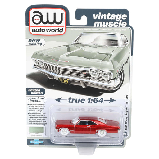 Ultra Red Chase Unit 1965 Chevy Impala SS 396 Vintage Muscle replica car Willow Green Poly decoration New casting Auto World Series 64512 Version ...