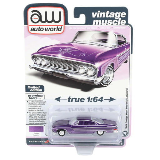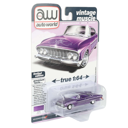 View full details1/64 1961 Dodge Dart Phoenix Lowrider, Purple Sky, Auto World Vintage Muscle