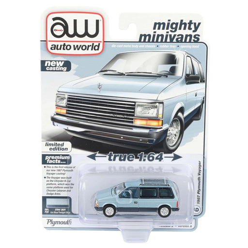 1987 Plymouth Voyager Mighty Minivans replica van Ice Blue and Twilight Blue decoration Auto World Series 64512 Manufacturer: Round2 Material: Die...