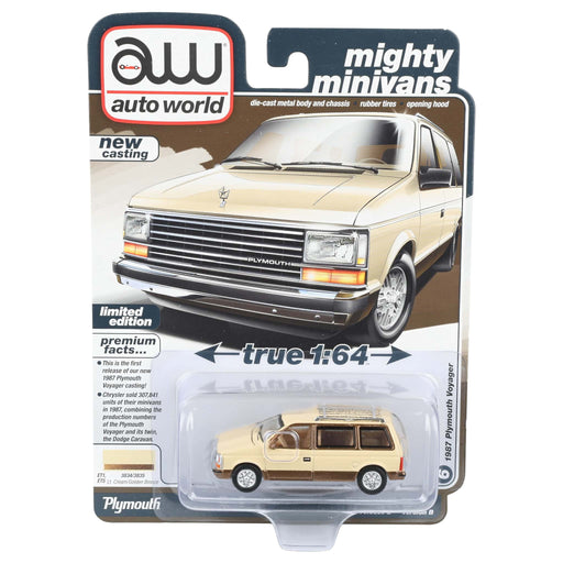 1987 Plymouth Voyager Mighty Minivans replica van Light Cream and Golden Bronze decoration Auto World Series 64512 Manufacturer: Round2 Material: ...