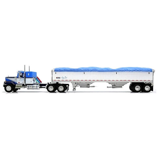 GMC General Semi Truck Replica Paired with a Wilson Pacesetter bottom grain trailer replica Shupe Bros Trucking Blue and white decoration Truck fe...