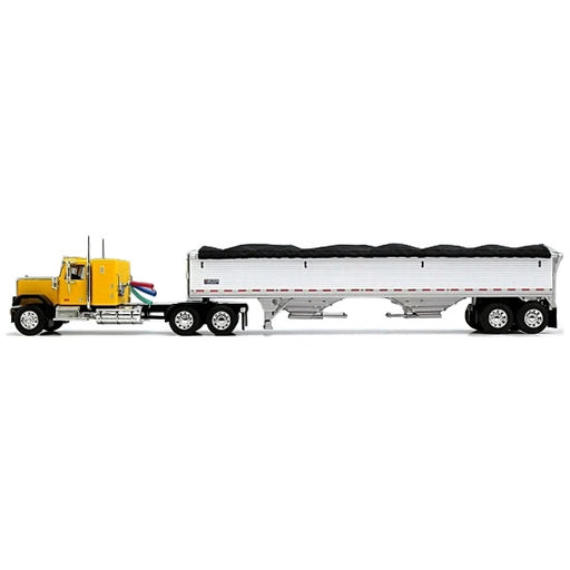 GMC General Semi Truck Replica Paired with a Wilson Pacesetter bottom grain trailer replica Yellow and white decoration featuring black tarp Truck...