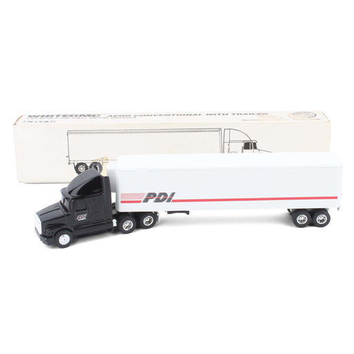 WhiteGMC Integral Sleeper Aero truck with reefer trailer toy PDI out of Ankeny, Iowa deco Manufacturer: ERTL Material: Diecast metal cab and trail...