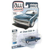 Add a classic Mopar muscle car to your collection with this 1970 Plymouth Sport Fury GT replica car featuring a stunning Jamaica Poly Blue decoration from Auto World Series 64512 by Round2! This 1/64 scale diecast car showcases a new casting, delivering fresh tooling and authentic details that capture the bold styling and performance heritage of the Sport Fury GT. Perfect for Auto World collectors, Plymouth enthusiasts, and fans of classic American muscle cars, this model brings vintage power to any diecast lineup.