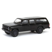 Check out the 1/64 scale 1985 Chevrolet Suburban C10 Custom Deluxe from the Black Bandit Series 29! Produced by Greenlight Collectibles, this model features new tooling and detailed craftsmanship. The die-cast metal chassis, rubber tires, and plastic components ensure a realistic and high-quality look.