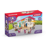 At the Schleich® Horse Club Rider Café you can get the best apple pie far and wide. Perfect to enjoy together with your best friends from the stable. And thanks to the terrace, even your horse can join you! Of course, your hoofed friends get their own tasty feast served up in the feeding trough. I wonder if it tastes as good as the cake?