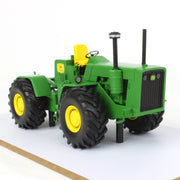 This replica of the John Deere 8010 tractor is made by Schuco. This tractor has a 4WD configuration. The replica is made of resin, meaning it is extremely fragile and is not in any way meant for play. This is not a toy! According to the manufacturer, it is recommended for ages 14+ years.