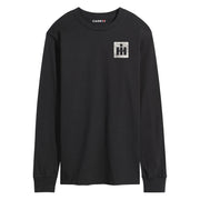 Celebrate your values with the Adult IH Faith Family Farming Flag Black Long Sleeve Shirt. This black shirt is made from 100% pre-shrunk cotton for lasting comfort. The front chest graphic proudly displays a distressed IH logo, while the back features an American flag with stars and stripes alongside the words "Faith, Family, Farming." Printed in the USA, this shirt is available in adult sizes.
