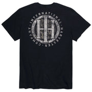 This sleek black shirt features the iconic IH Seal on the front left chest and a large IH Seal logo on the back of the shirt. Made from 100% pre-shrunk cotton for a comfortable fit, it's available in adult sizes.