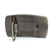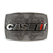Made by SpecCast, this is a Western Style Belt Buckle featuring the Case IH logo. This is a highly collectible piece and is officially licensed as Case IH merchandise. It features a silver rounded rectangle shape and a western-style design on its background. The buckle has a hook style closure and will accommodate up to a 1.5" wide belt. This belt buckle is made of solid metal. Recommended for ages 14+. Measures approximately 3.375"W X 2.375"H.