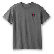 The IH McCormick Deering Farmall Tractor T-Shirt comes in adult sizes and features a graphite heather color. This short sleeve shirt is made from a comfortable 50% cotton and 50% polyester blend, with a screen-printed design showcasing the iconic Farmall Tractor.