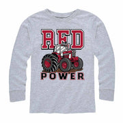This is a International Harvester graphic t-shirt. The IH shirt is a heather grey color and fits true to size to most toddlers. The graphics are featured on the front of the shirt, "Red Power" with red International Harvester tractor graphic. Per the manufacture the shirt can be machine washed and tumbled dry.