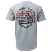 - Back features a tractor graphic with “Love Your Family, Love Your Farm, Feed America”