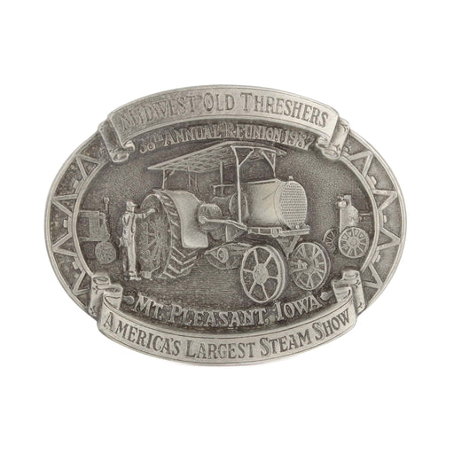 Vintage High Detail Belt Buckle 1984 Midwest Old Threshers Reunion Mt Pleasant Iowa decoration Features a Case Steam Tractor Serialized Great Amer...