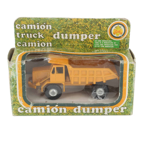 Camion Dump truck toy Manufacturer: Joal Material: Diecast metal with plastic and rubber components Approximate dimensions: 4.25in L x 1.5in W x 2...